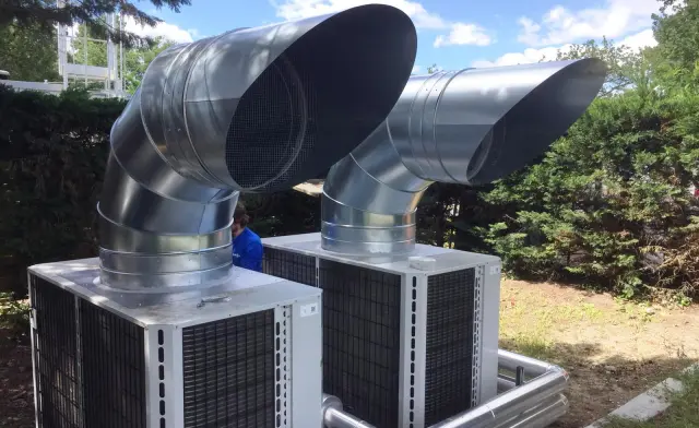 Cleaneol SO (Sud Ouest) a réalisé la pose de gaines de refoulement d’air sur des pompes à chaleur du bâtiment Dourthe